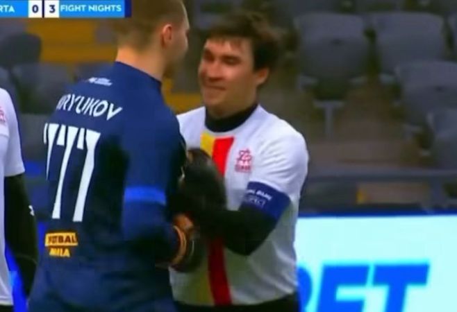 На футбольном поле «Астана арены» произошла потасовка между олимпийским чемпионом Сериком Сапиевым и бойцом ММА из России Кириллом Крюковым. Разнимал спортсменов призер олимпиады боксер Адильбек Ниязымбетов.