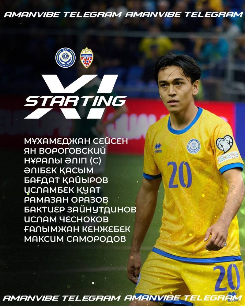 Журналист Елдар Аманбаев опубликовал стартовый состав сборной Казахстана на матч квалификации чемпионата мира против Лихтенштейна.