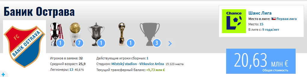«Баник» (Baník Ostrava) – это один из самых титулованных и популярных футбольных клубов Чехии с вековой историей. В сезоне 2024-2025 годов клуб занял 3-е место в Первой лиге.