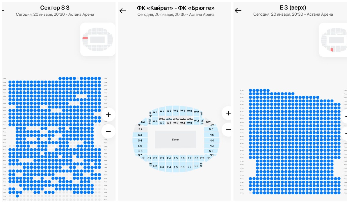 Интерес к матчу «Кайрат» – «Брюгге» в столице умеренный: сервисы по продаже билетов показывают наличие свободных мест на большинстве секторов.