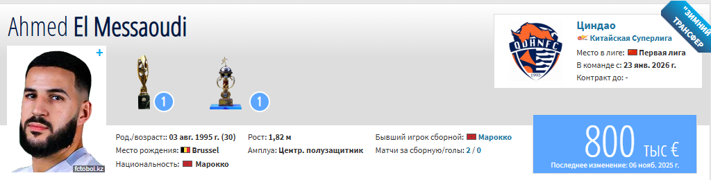 Ахмед Эль-Мессауди – опытный марокканский полузащитник. Являясь воспитанником бельгийского «Льерса», он дебютировал на профессиональном уровне в 2013 году. За свою карьеру футболист успел поиграть в чемпионатах Бельгии («Стандард», «Мехелен»), Нидерландов («Фортуна Ситтард», «Гронинген», «Эммен») и Турции («Газиантеп»), а также вызывался в национальную сборную Марокко.