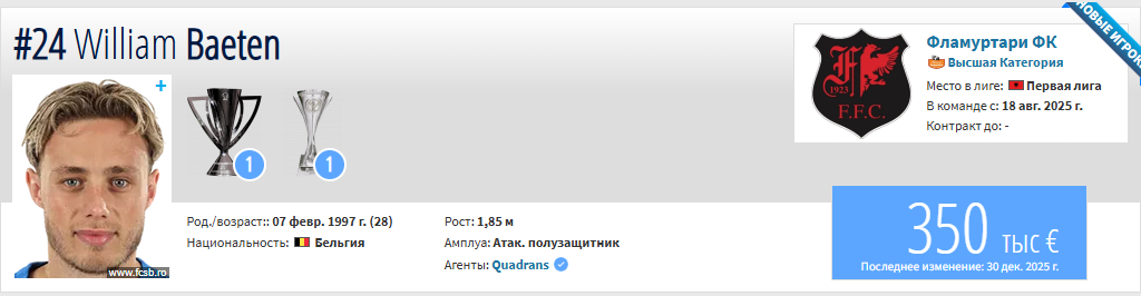 По инфомации телеграм-канала Goal Kz, Вильям Баэтен, защищающий цвета албанского «Фламуртари», получил приглашения сразу от двух команд высшего дивизиона Казахстана – «Тобола» и «Елимая».