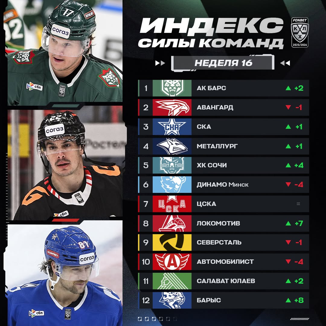 Континентальная хоккейная лига представила обновленный рейтинг команд по итогам 16-й игровой недели сезона, передает Offside.kz.