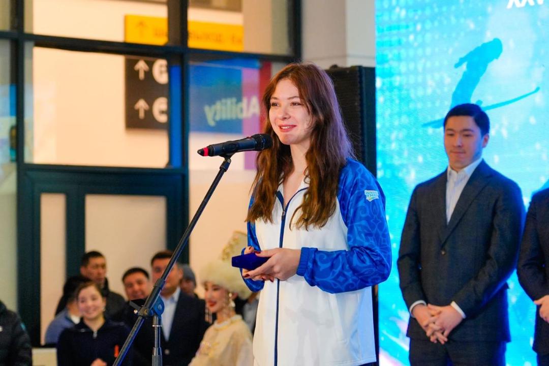 Кадры торжественной встречи опубликовала пресс-служба НОК РК. Для фигуриста была организована сцена, на которую он поднялся после объявления. Шайдоров вышел с флагом Казахстана на плечах и с золотой медалью Олимпийских игр на груди.