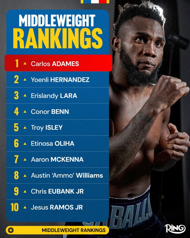 Первую строчку теперь занимает доминиканец Карлос Адамес, удерживающий титул чемпиона мира по версии WBC. Следом за ним в тройке лучших расположились представители Кубы – Йоэнлис Эрнандес и ветеран Эрисланди Лара.