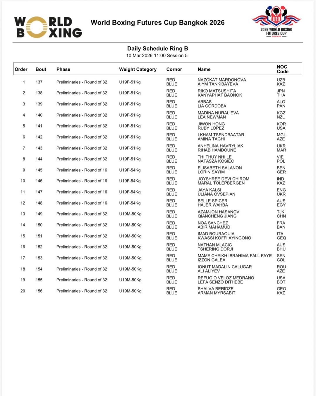 Также в 1/16 финала в весе до 50 килограммов казахстанец Арман Мырсабит проведёт бой против представителя Грузии Шалвы Беридзе.