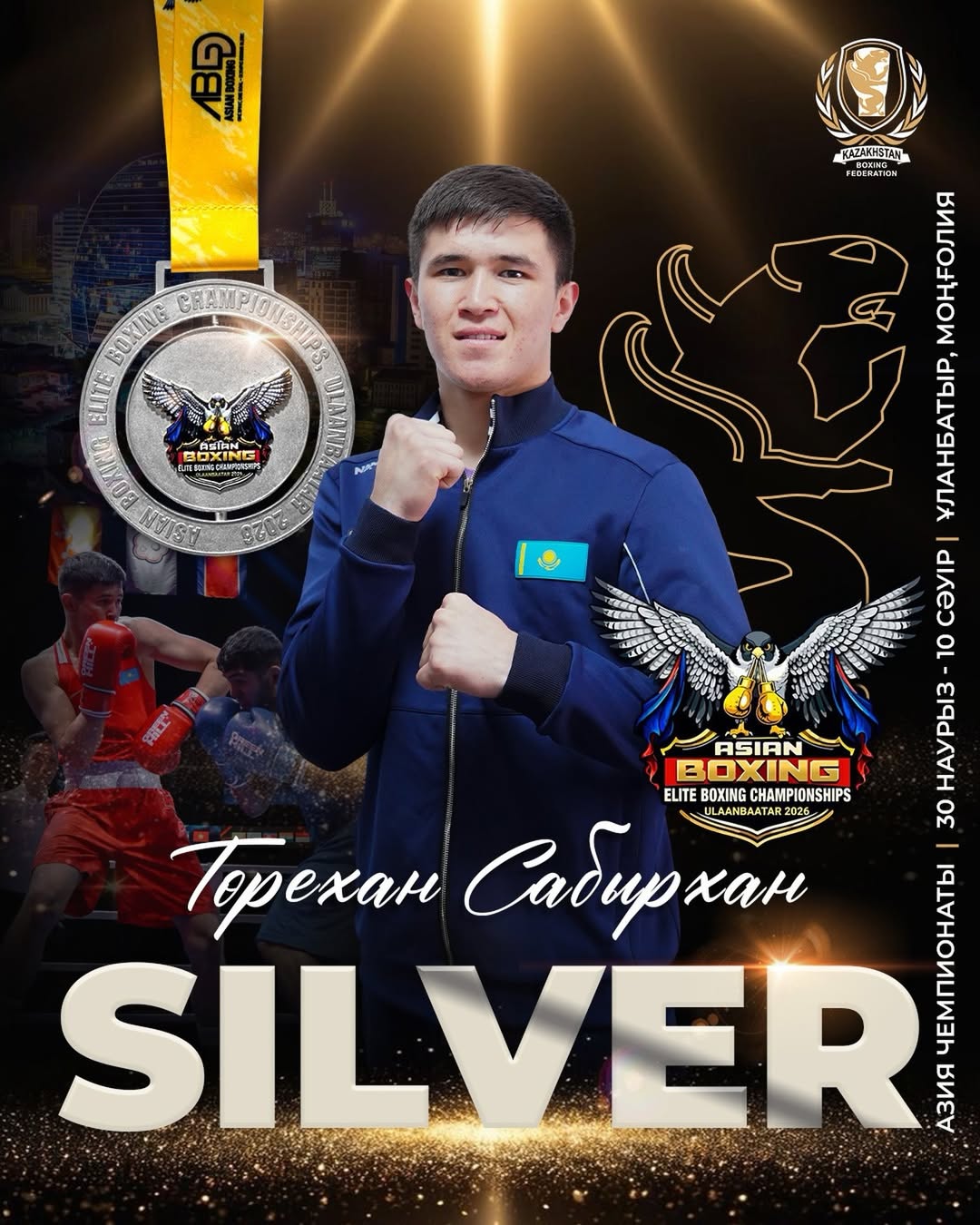 Казахстанский боксер Торехан Сабырхан завоевал серебряную медаль чемпионата Азии-2026 в Улан-Баторе, уступив в финале Зеяду Ишаишу из Иордании.