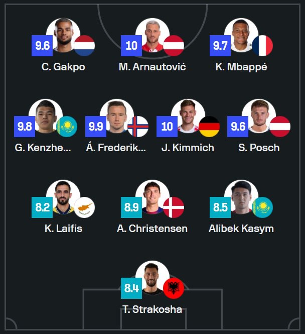 Казахстанские игроки оказались в престижной компании мировых звёзд. Компанию им составили француз Килиан Мбаппе, австриец Марк Арнаутович, нидерландец Коди Гакпо, немец Йозуа Киммих и другие футболисты.