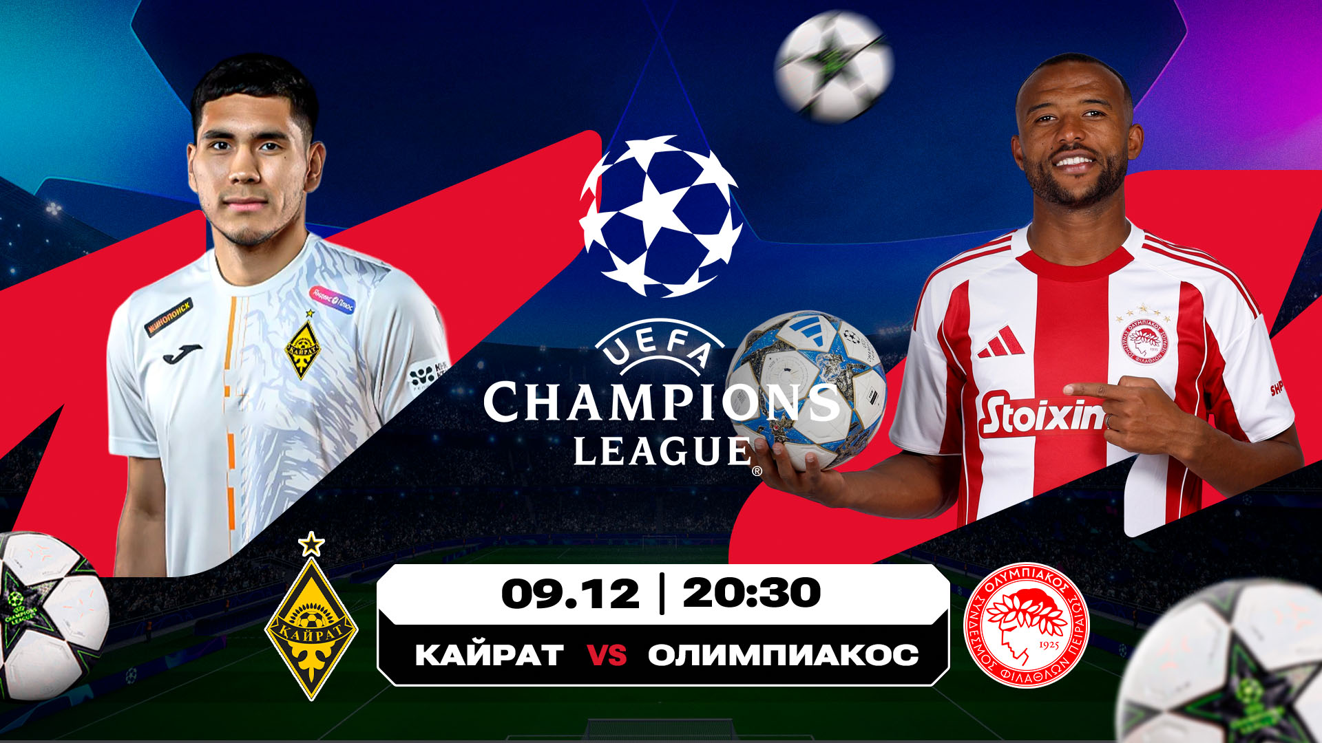 Лига чемпионов. «Кайрат» (Казахстан) – «Олимпиакос» (Греция). 8 декабря, 20:30 (время Астаны)