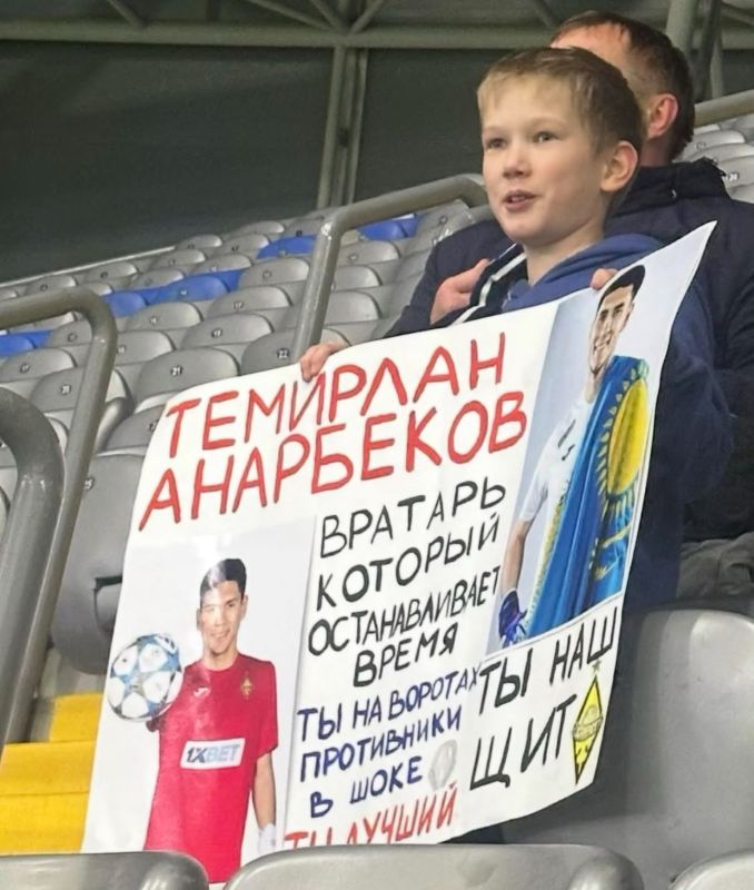 Матч «Кайрата» против греческого «Олимпиакоса» завершился поражением казахстанского клуба со счетом 0–1 на стадионе «Астана Арена». Несмотря на проигрыш, игра вызвала бурную реакцию в сети, и молодые болельщики активно поддерживали вратаря команды Темирлана Анарбекова. Фанаты принесли на трибуны плакаты в его честь, но, к сожалению, вручить их своему герою им не удалось.
