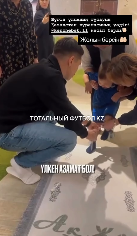 Футболист стал почетным гостем на торжестве, где ему доверили разрезать путы ребенку, согласно казахским обычаям.