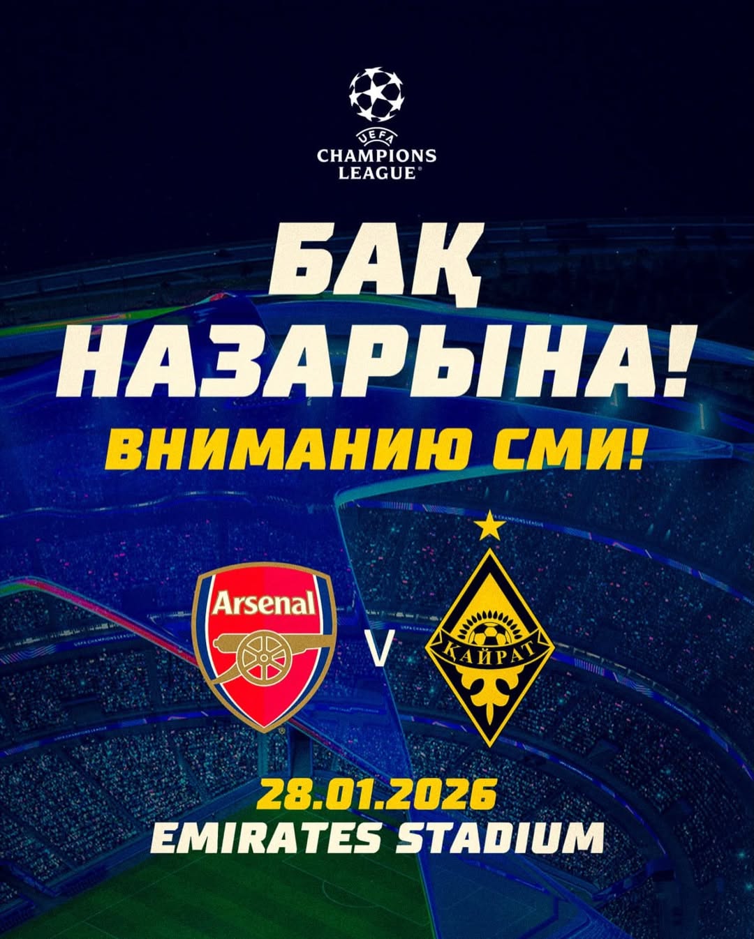 В рамках общего этапа Лиги чемпионов УЕФА (8-й тур общего этапа) сезона 2025/26 казахстанский клуб отправится в Лондон на встречу с английским «Арсеналом».