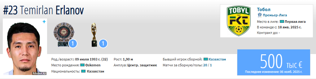 Для Ерланова «Актобе» является хорошо знакомым коллективом. Опытный защитник уже защищал цвета «красно-белых» в сезонах 2021-2022 годов.