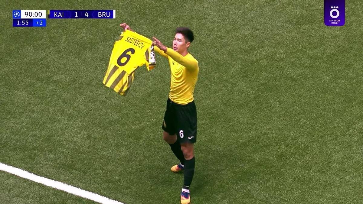 20 января в Астане «Кайрат» уступил бельгийскому «Брюгге» со счетом 1:4. Единственный мяч алматинцев на последних минутах встречи забил Адилет Садыбеков, реализовав удар из-за пределов штрафной площади. Сразу после взятия ворот полузащитник снял футболку и продемонстрировал трибунам свой игровой номер. Согласно правилам ФИФА, за этот жест футболист получил желтую карточку.