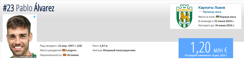 Стоимость трансфера Пабло Альвареса, согласно данным портала Transfermarkt, составляеет 1,2 млн евро, или 714 млн тенге.