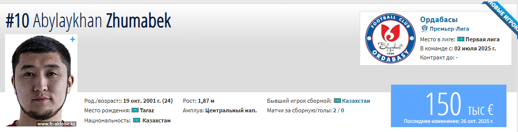 По информации AmanVibe, форвард уже согласовал все условия личного контракта с «нефтяниками». Ожидается, что в ближайшие дни Жумабек прибудет в расположение новой команды на учебно-тренировочный сбор в Турции для официального оформления перехода.