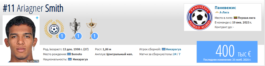 Нападающий сборной Никарагуа Ариагнер Смит подписал контракт с футбольным клубом «Улытау» и в новом сезоне будет выступать в КПЛ, пишет Aman Vibe. Последним клубом форварда был литовский «Паневежис».