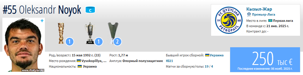 Ранее 33-летний полузащитник выступал за «Атырау» в сезоне 2023-2024 годов. В прошлом сезоне он защищал цвета «Кызылжара» из Петропавловска, проведя 22 матча в Премьер-Лиге, не отметившись результативными действиями, получив две желтые и одну красную карточку.