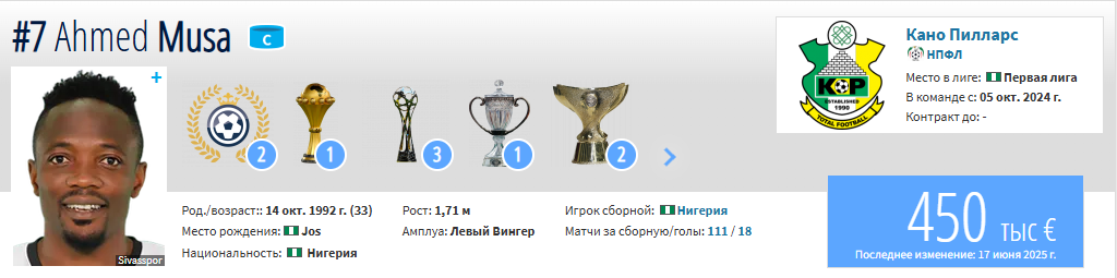 33-летний Ахмед Муса известен выступлениями за московский ЦСКА, с которым трижды выигрывал чемпионат России. В начале февраля СМИ сообщали о переговорах «Кайсара» с футболистом. Ранее клуб подписал ещё одного экс-партнера Мусы по сборной Виктора Мозеса.