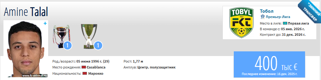 29-летний игрок пропустил все товарищеские матчи «Тобола», набирая форму после пяти месяцев простоя. Ожидается, что в ближайшие две недели Талал вернётся к полноценной работе на поле.