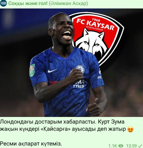 «Со мной связались мои друзья из Лондона. По слухам, Курт Зума в ближайшем будущем перейдёт в „Кайсар“. Мы ждём официальной информации».