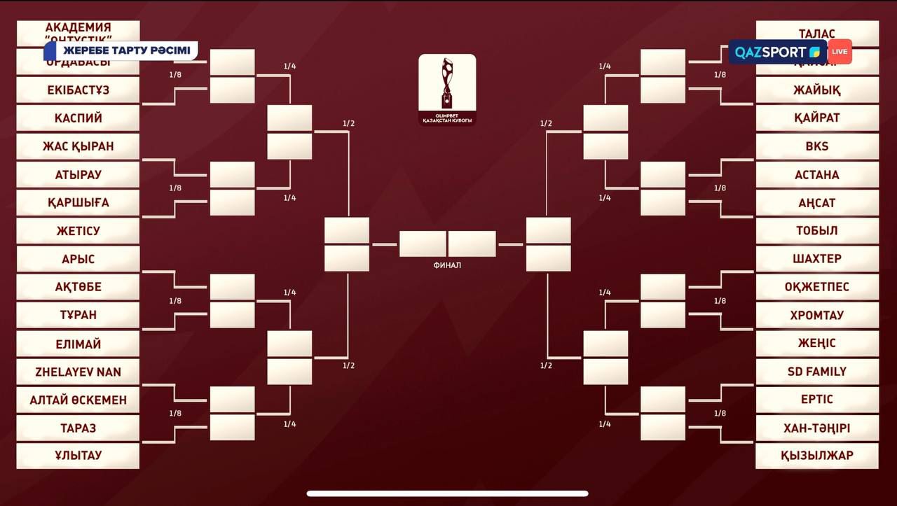 В Казахстане прошла жеребьевка первого раунда Кубка страны сезона-2026. Турнир объединит клубы Премьер-лиги, Первой и Второй лиг, а также любительские коллективы.