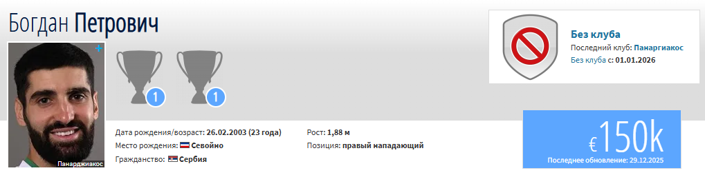 Богдан Петрович – сербский футболист, правый вингер. Родился 26 февраля 2003 года в Севойно.