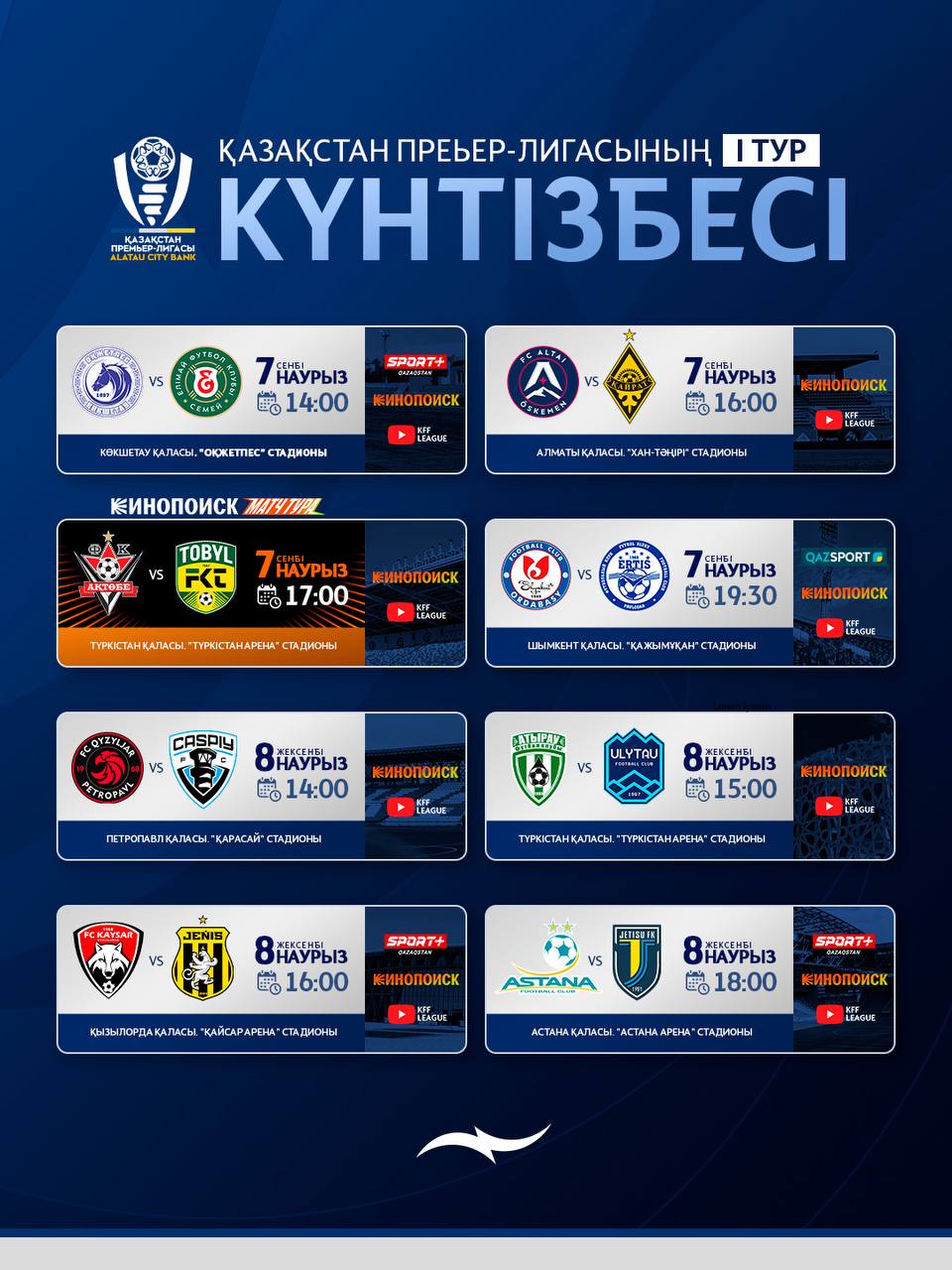 Первый тур КПЛ-2026: расписание матчей и где смотреть