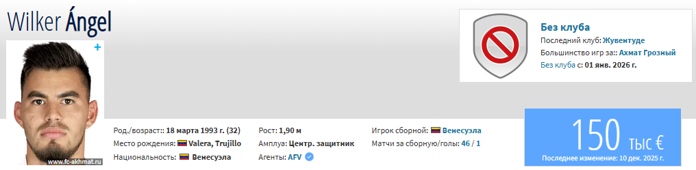 В 2025 году сообщалось, что переход Вилькера Анхеля из грозненского «Ахмата» в «Актобе» сорвался на финальной стадии переговоров.