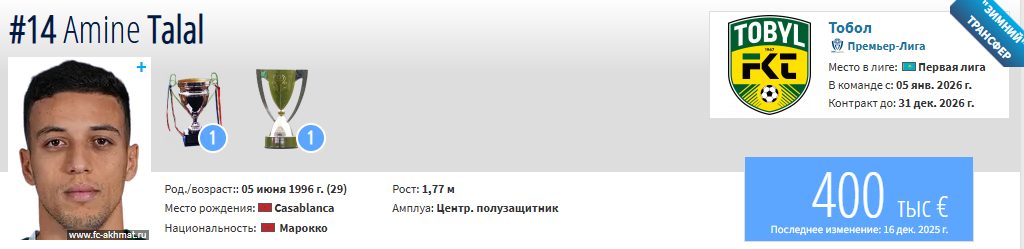 К восстановлению Амин Талал приступил в преддверии продолжения сезона, пропустив старт чемпионата из-за повреждения, пишет телеграм-канал AmanVibe.