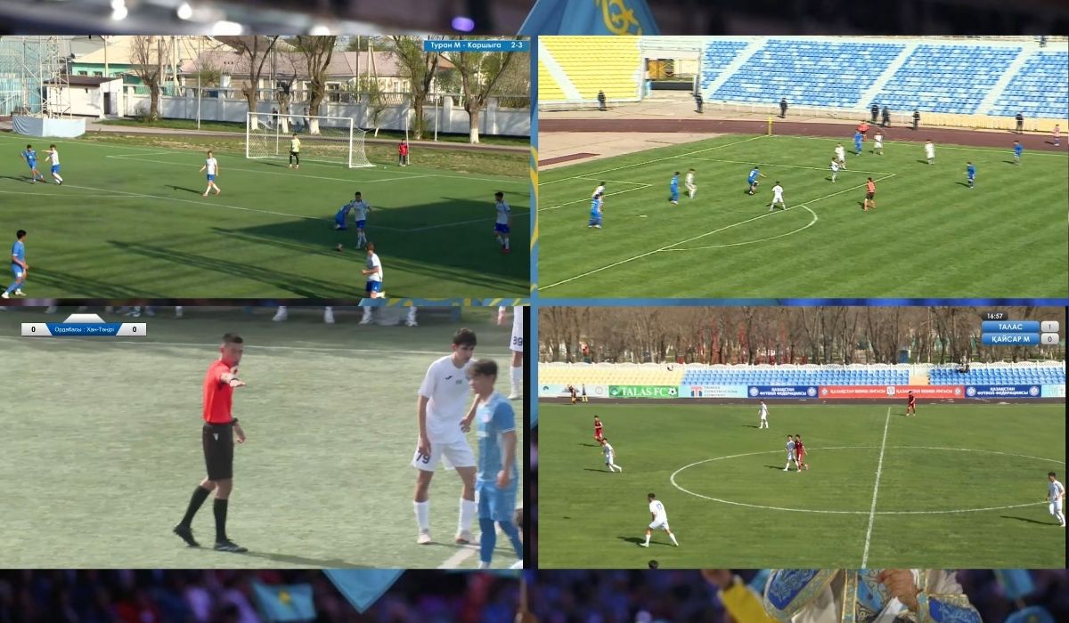 Единственным матчем, где корректно отображались название команд и время встречи, стало противостояние «Талас» — молодежный «Кайсар». При этом дизайн информационных блоков в разных матчах был разным, что указывает на отсутствие единого стандарта трансляции.