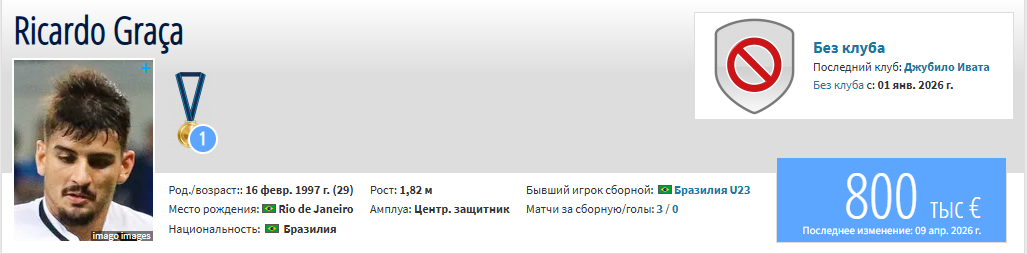 На данный момент он находится в статусе свободного агента. Стоимость легионера портад Tansfermarkt оценивает в 800 тысяч евро, или 448 млн тенге.