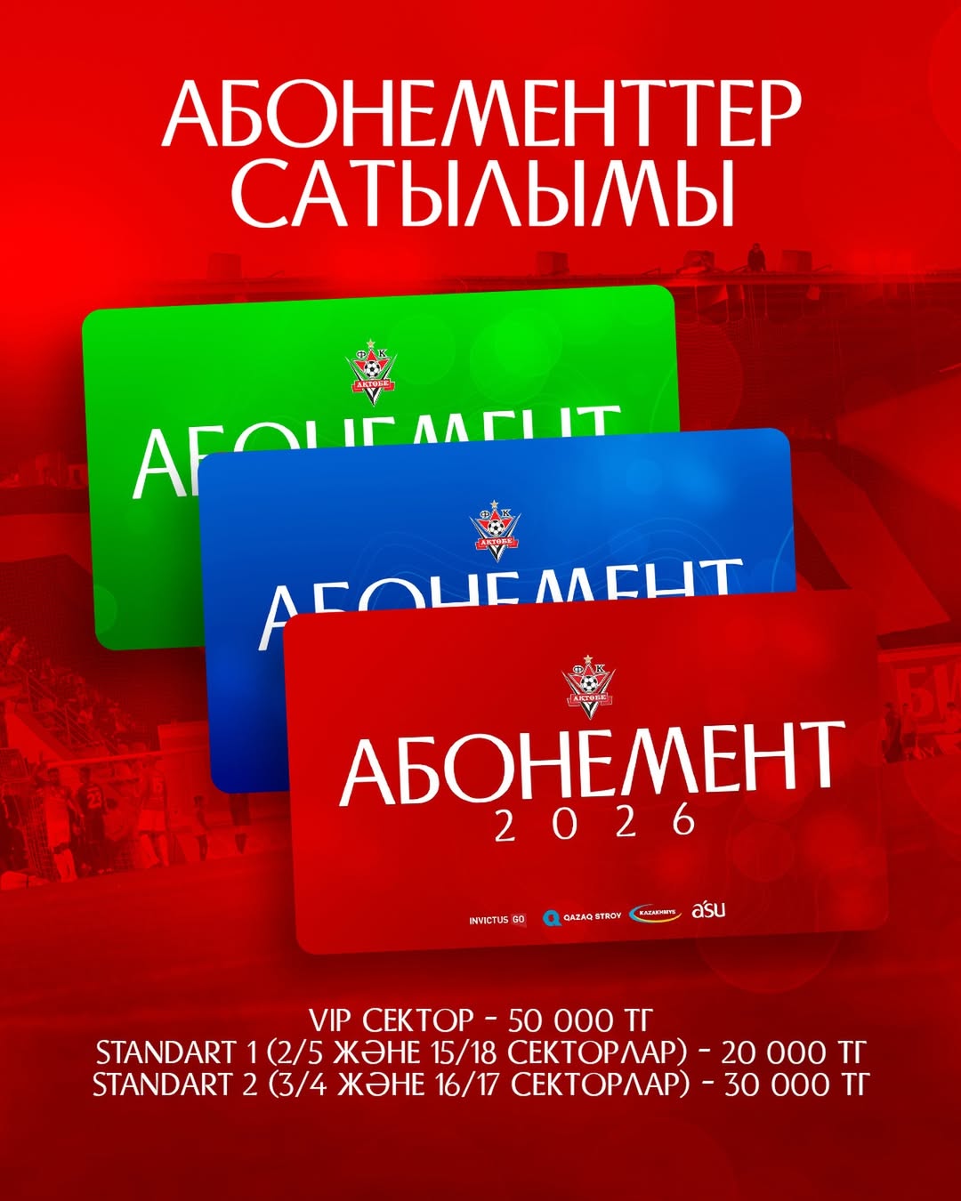 Клуб «Актобе» объявил о старте продаж абонементов на домашние матчи 2026 года. Владельцы смогут выкупить свои места с 21 по 23 апреля.