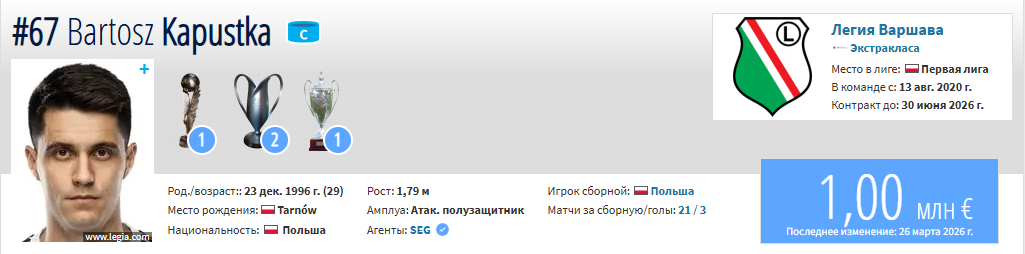 Бывший нападающий «Атырау» Пшемыслав Трытко в интервью ASnews.kz высказался о возможном трансфере полузащитника «Легии» и экс-игрока сборной Польши Бартоша Капустки в чемпионат Казахстана.