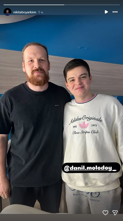 Фотографию с киберспортсменом в Instagram Stories опубликовал вратарь сборной Казахстана по хоккею Никита Бояркин.