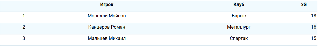 Согласано данным по создаваемы голевым моментам дуэт лидеров остался прежним. Мэйсон Морелли из «Барыса» увеличил свой показатель до 18 ожидаемых голов, при этом он забросил всего 8 шайб. В то время как Роман Канцеров из «Металлурга» он лидирует в списке лучших снайперов сезона с 24 шайбами.