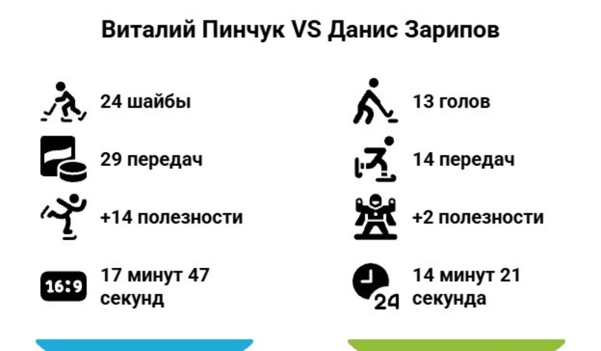 Разница между этими игроками и их сезонами отчётливо видна в деталях. Пинчук активно участвует в борьбе за шайбу, входит в топ лиги по отборам и стабильно создаёт давление в чужой зоне. Зарипов же на закате своей карьеры действовал экономнее, выбирая моменты, где опыт и позиционное чутьё позволяли компенсировать снижение скорости.В