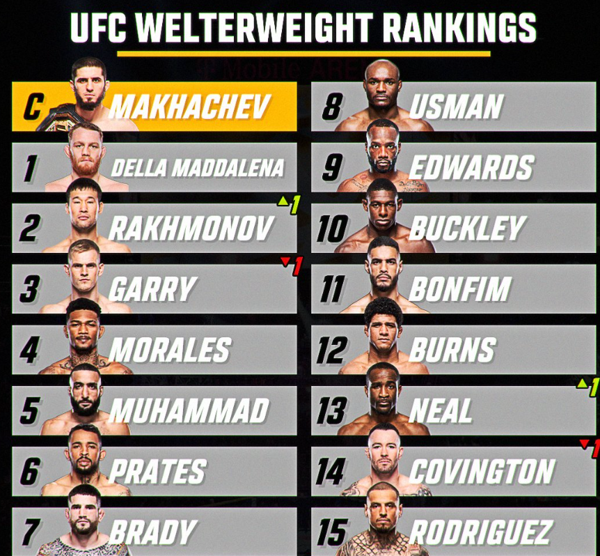 Повышение в рейтинге должно было приблизит Рахмонова к титулу, но 34-летний чемпион дивизиона Ислам Махачев спутал все карты. Россиянин снова выразил желание в следующем поединке подраться не с официальными претендентами, а с ветераном и экс-чемпионом Камару Усманом.
