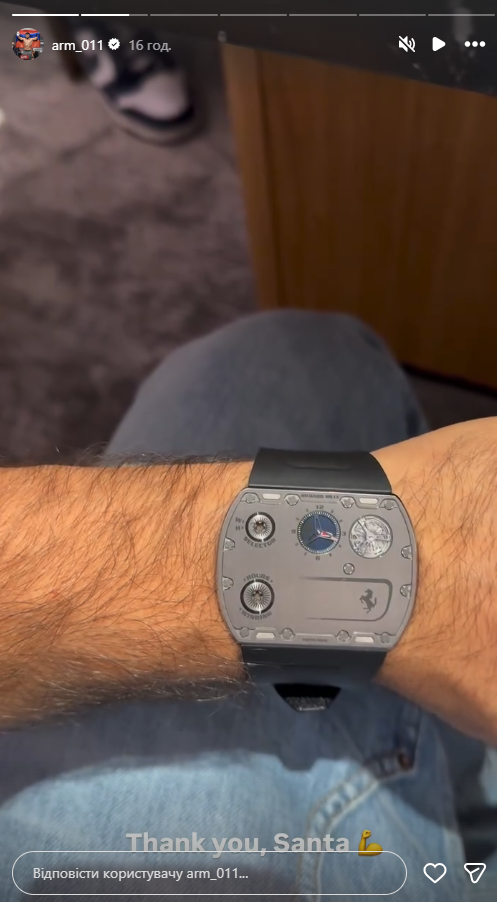 Спортсмен показал предмет роскоши в сторис, лаконично подписал фотографию: «Спасибо, Санта».