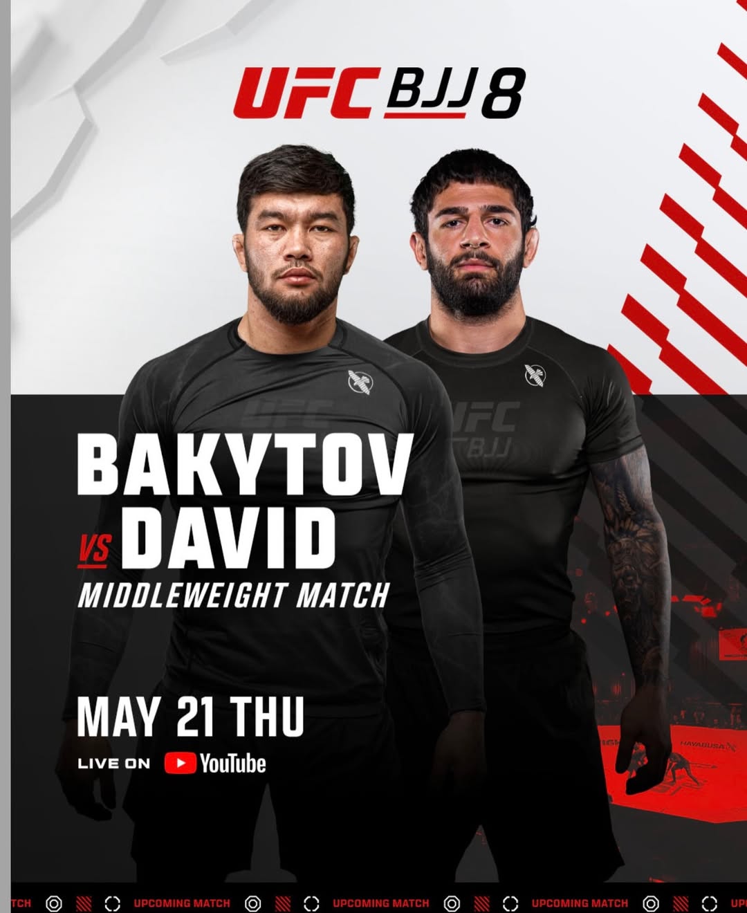 Казахстанский боец Азамат Бакытов дебютирует в лиге UFC BJJ 21 мая против австралийца Томаса Дэвида. Он станет первым представителем Евразии в турнирах лиги.