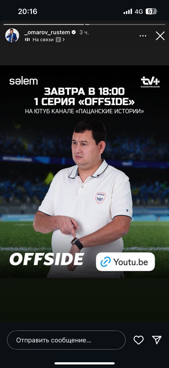 15 октября в 18:00 состоится премьера первой серии сериала «Offside», передаёт Offside.kz.