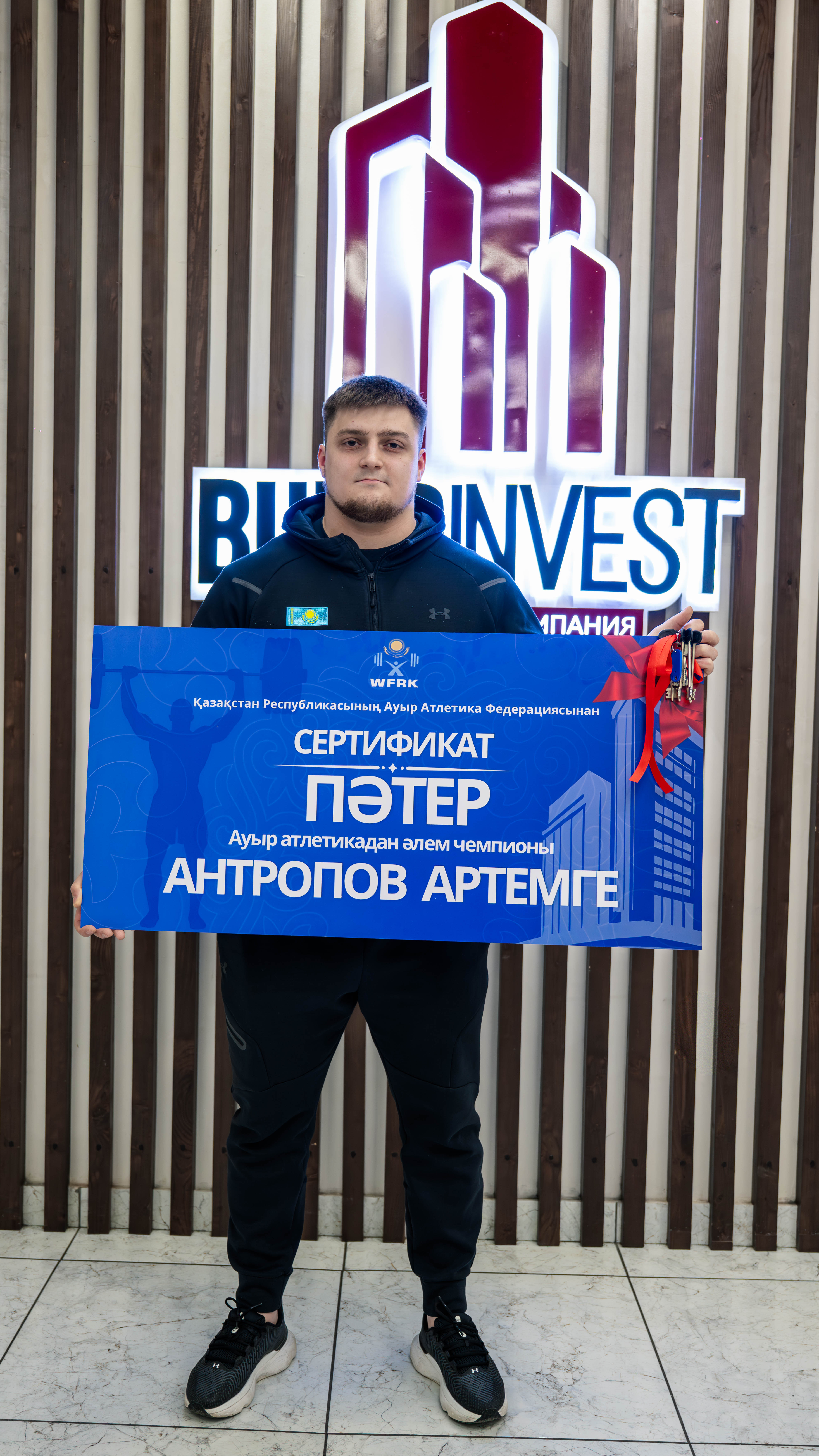 В Караганде прошла торжественная церемония, на которой Федерация тяжелой атлетики Республики Казахстан вручила ключи от квартиры чемпиону мира Артему Антропову.