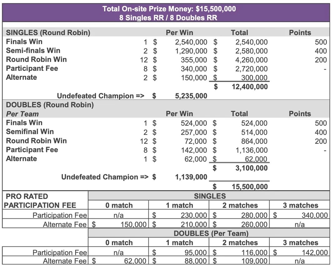 - $710,000 — призовые за две победы в групповом этапе (по $355,000 за каждый выигранный матч).