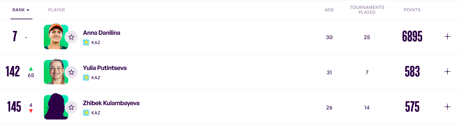 Сильнейшая парная теннисистка Казахстана Анна Данилина сохранила за собой седьмую позицию.