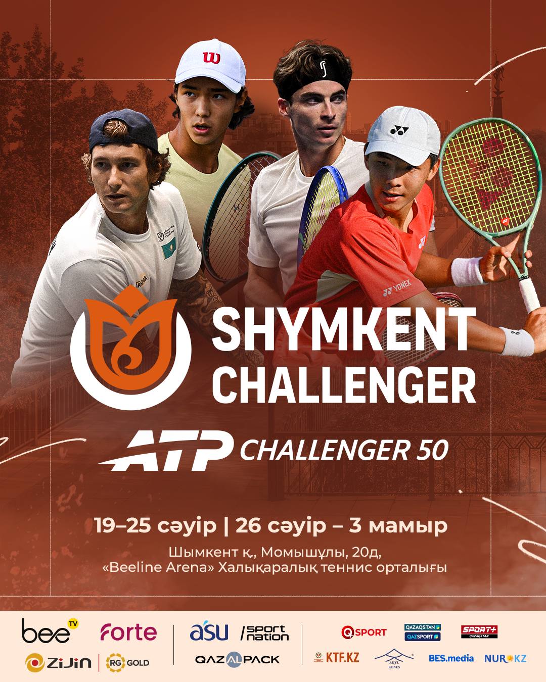 Турнир пройдет с 19 апреля по 3 мая в Шымкенте на кортах международного теннисного центра Beeline Arena.
