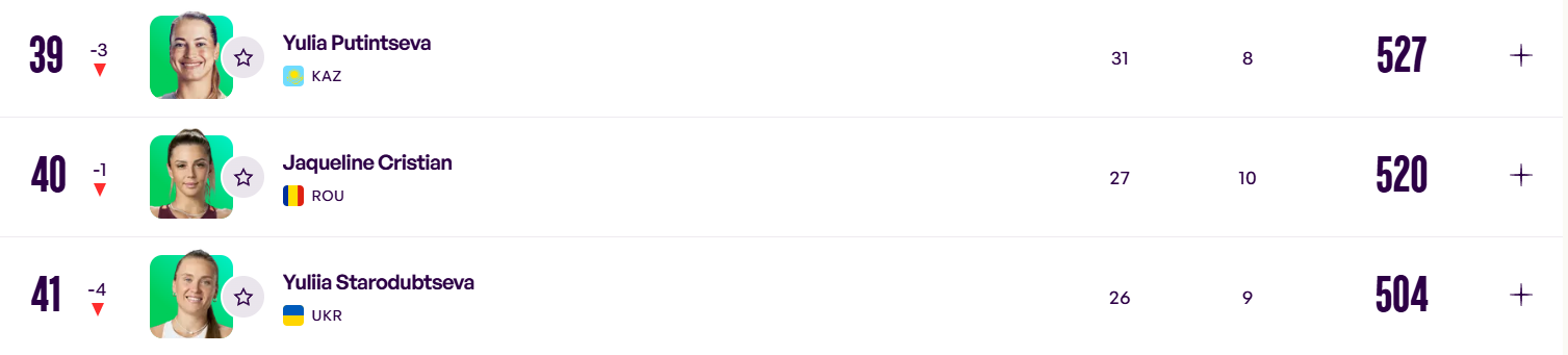 Юлия Путинцева потеряла три позиции и теперь занимает 39-е место в чемпионской гонке.
