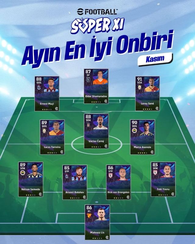 Согласно версии eFootball Super XI, в список лучших игроков по итогам ноября вошли как представители турецких клубов, так и звезды европейского масштаба. Присутствие Шомуродова в таком составе подчеркивает его растущий авторитет в лиге.