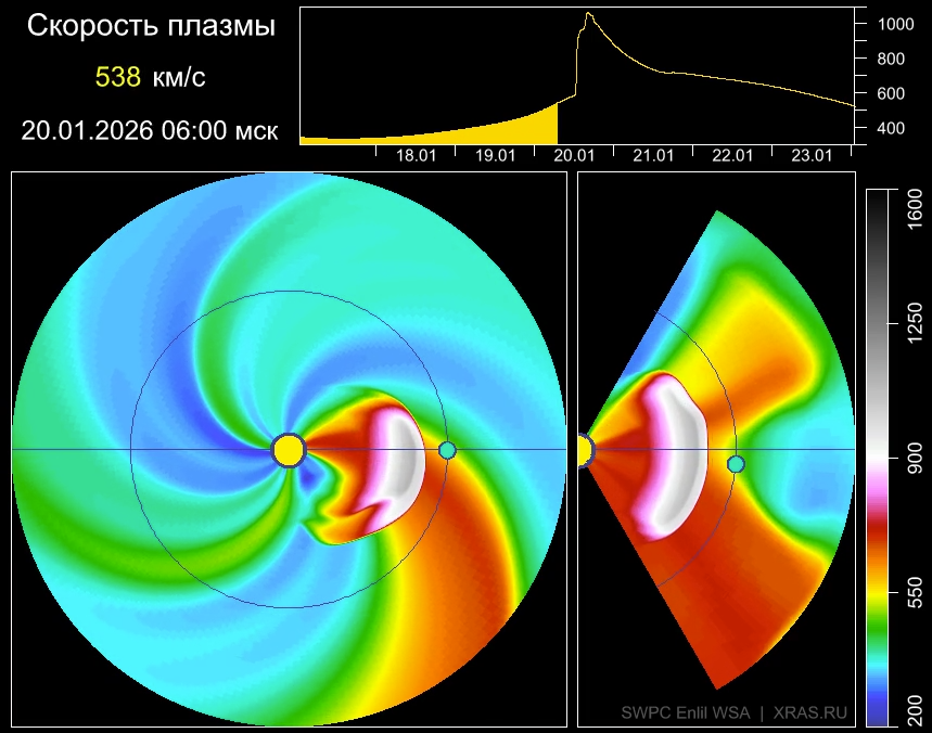 По предварительным расчетам, плазменное облако достигнет нашей планеты в течение вторника, 20 января.
